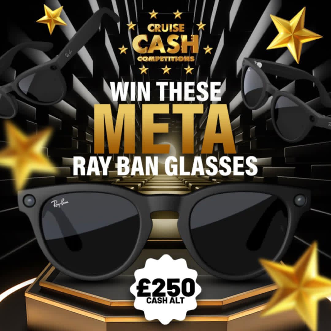 1 X WINNER WILL BE DRAWN LIVE USING RANDOM.ORG. WINNER WILL TAKE THE PRIZE OF META RAY BAN GLASSES OR A £250 CASH ALTERNATIVE